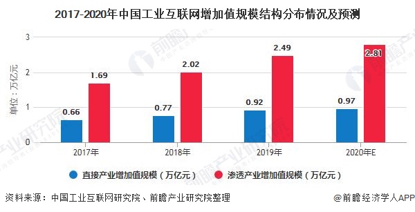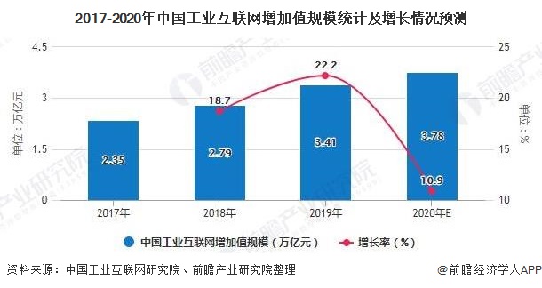 1、2020年中国工业互联网增加值规模将近3.8万亿元