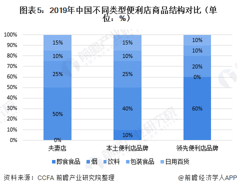 从不同类型便利店商品结构来看,2019年我国领先便利店品牌即食食品占比达60%,本土便利店品牌即食食品占比仅为10%,夫妻店基本不经营即食食品品类,因此,领先便利店品牌毛利率高于行业平均水平。