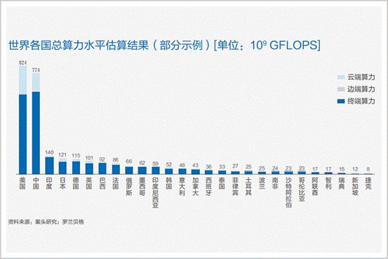 在衡量某个国家或者地区经济发展的时候,我们总用GDP作为衡量标准。但是在数字化、智能化的今天,计算力正在成为事实上的衡量标准。国际权威机构罗兰贝格曾对世界各国总计算力水平进行评估,并形成了一个表格。在这个表格中,中美两国遥遥领先,紧随其后的则是英、法、德、印、日等经济强国。这个结果也大体与各国经济发展水平相对应。