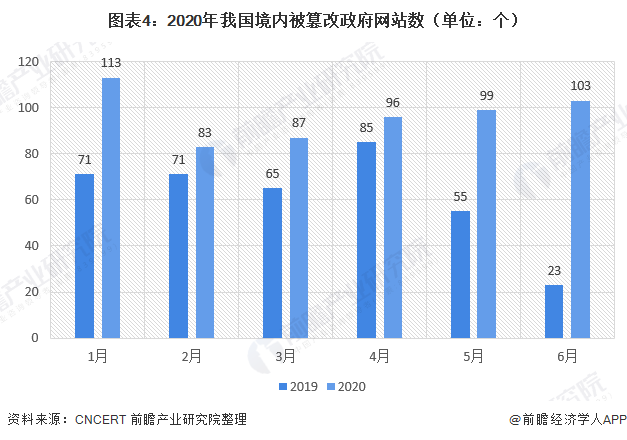 2020年上半年,CNCERT共监测发现我国境内被要改政府网站581个,较2019年同期(370个)增长57.0%。