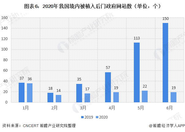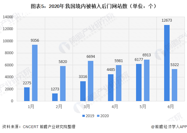 2020年上半年,CNCERT共监测发现我国境内被植入后门的网站数量为40086个,较2019年同期(30199个)增长32.79%。