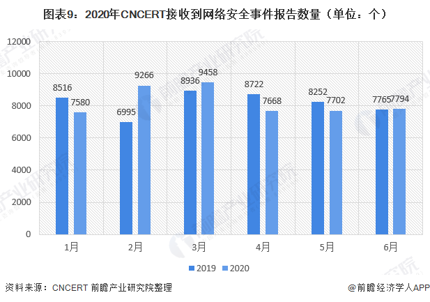2020年上半年,CNCERT接收到网络安全事件报告49468件,较2019年同期(49186件)增长0.6%。
