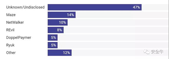 根据Cybersecurity Dive的监测数据,尽管Maze和NetWalker针对医疗行业组织实施了大量攻击,但其他各行业的攻击中也发现了包括Maze、NetWalker和REvil的身影。此外,将近半数的勒索软件攻击都未公开。