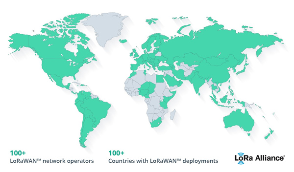 2019年,LoRaWAN部署在100多个国家,比2018年增加了60%。