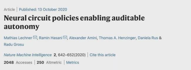 新系统由卷积神经网络和控制系统构成。其中,控制系统部分,又被称为神经回路策略(NCP),可以将感知模块中的数据转换为转向命令,仅包含19 个神经元,比现有最好模型要小好几个数量级。