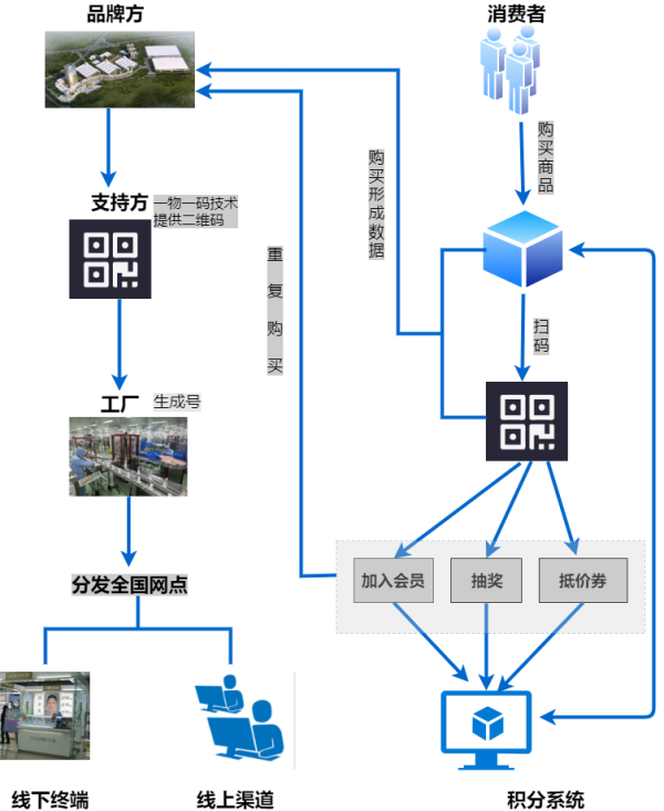 工业互联网标识解析技术与二维码营销系统相结合不仅能帮助传统日化行业快速进入互联网营销领域,还能够帮助商家实现“快速动销、防止截止、监控串货、掌控终端、防伪溯源”等五大难题。消费者只需在购买产品之后,通过扫描工业互联网标识二维码,除了可以获得产品的溯源信息外还可关注厂商的公众号,参与企业的抽奖活动,兑换奖品。通过各种创新营销模式促进消费者再次购买。