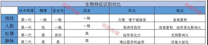 从下图可以看出,在多项技术指标上,指纹识别和人脸识别并非最好的生物识别方式。
