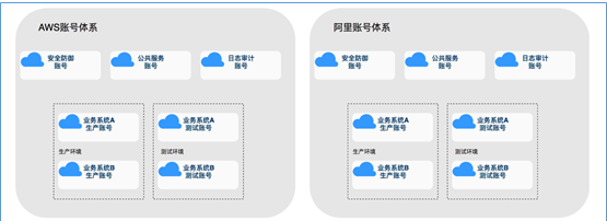 由于公有云的特点,相比私有云来说,公有云很容易成本安全较薄弱的一个点。因此在进行公有云整体规划时,进行公有云的整体规划,做好公有云账号之间的隔离,收紧互联网入口,同时部署WAF、IDS等安全设备,对于部署在公有云的应用进行安全防御。从网络层面,进行业务账户东西向网络和南北向网络的隔离。从审计层面,把所有云平台的操作日志进行统一存储。
