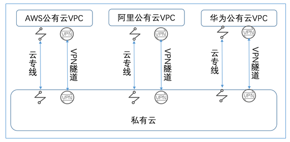 为了更好满足应用在多个云资源池之间的数据通信,需要构建多个云资源池之间的网络通道。构建网络通道有两种方式,一种是云专线,另一种是VPN。云专线可以提供较高稳定性的网络链路,在构建时,由于每个公有云都会有很多个Region,因此在接入时,需要结合私有云的数据中心位置,选择合适的接入点,同时在设计公有云网络拓扑时,需要把所有从公有云和私有云之间的网络流量都要经过这个接入点。VPN的接入方式,可以通过互联网构建IPSec VPN,特点是成本要远低于专线,但稳定性和带宽的质量不如专线。另外,也可以选择一些网络供应商,这些供应商可以提供连接多个公有云的网络线路,也可以当作自建VPN和专线的折中方案。