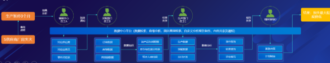 数据应用即为数据的应用、交换与服务,需要通过Finereport、FineBI等可视化的途径直接服务于企业的一线生产人员、监管人员、业务负责人、公司高层以及企业董事,以下图为例,数据应用应由统一的平台支撑,涉及数据预警、数据检索、数据分析、固化查询报表、自定义分析报告制作以及内容的共享和通知。