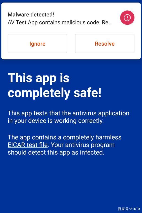 您可以使用F-Secure AV Test(请参见)之类的免费工具来测试手机的安全态势。该软件使用由EICAR(欧洲计算机反病毒研究所)开发的反恶意软件测试文件,来评估您手机受到的防护、及其已安装应用程序的运行状况。EICAR文件是被作为一种测试病毒开发的。当然,它本质上并非病毒。此类脚本的二进制特征码被包含在大多数防病毒产品的病毒码文件中。