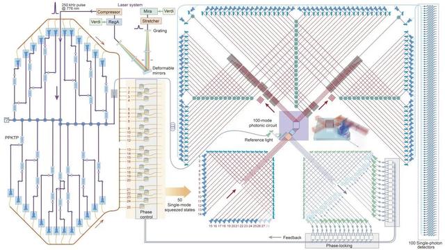 ▲ “九章”量子计算原型机光路系统原理图 | 图源:中国科学技术大学