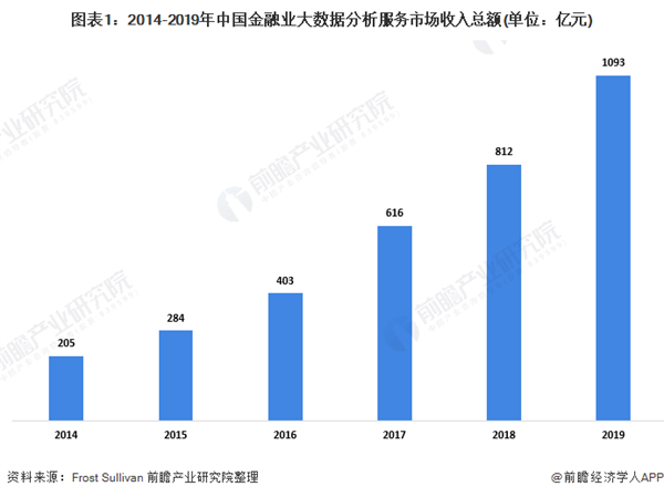 2019年,中国金融服务业大数据分析服务市场的收入总额为人民币1093亿元,受COVID-19疫情影响,2020年上半年,金融机构的业务发展步伐放慢,导致对大数据分析服务的整体需求下降。