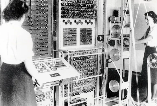 第二次世界大战期间,布莱切利公园的密码学家使用巨人计算机(Colossus computer)破译德国军事通信。来源:SSPL/Getty。