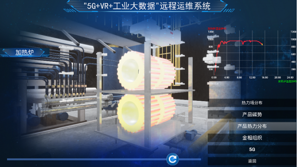 航天云网公司将“5G+VR+数字孪生”技术与工业大数据技术深度融合,应用于新兴通用热处理炉的运维优化,让作业人员能远程、实时地对设备进行点检及维护,有效地缩短了人员作业时间,提高设备运维效率25%;通过对工艺数据可视化展现及对产品质量实时分析预测报警,让作业人员能精准控制热处理过程的工艺,提升产品一次检验合格率提升至98%;通过实时监控、远程异常处理,避免炉膛异常爆裂,极大的降低了安全隐患,降低的安全事故发生率95%;通过分析工艺升温曲线,减少不必要保温时间,通过提高产品良率,减少报废率和返修率,能节约能耗,节约金额达5万元/月。