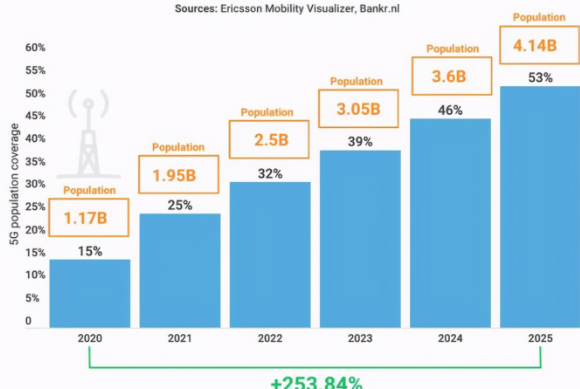 根据Bankr的一项分析,4年后,约有41亿人将获得5G覆盖。到2025年,这一数字将达到254%。