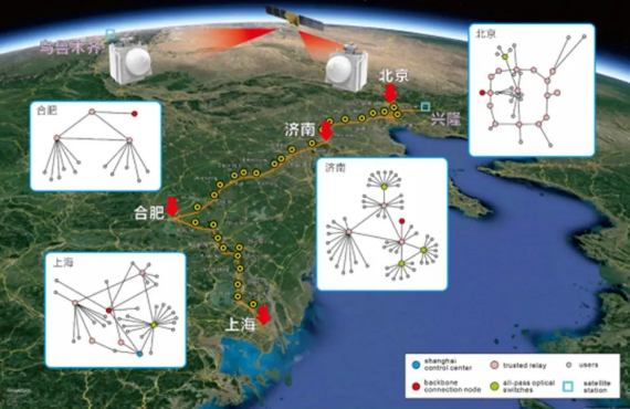 不过让众人没想到是,战略布局刚发布没多久,中国以往在量子科技中积累的技术和研究就开始爆发出成果来了。还记得中国在2016年发射的“墨子号”量子卫星吗?中国研究团队在2017年成功将量子保密通信京沪干线与该量子卫星成功对接,如何在这个基础上,中国研究团体构成全球首个集成700多条地面光纤量子密钥分发(QKD)链路和两个星地自由空间高速QKD链路的广域量子通信网络。