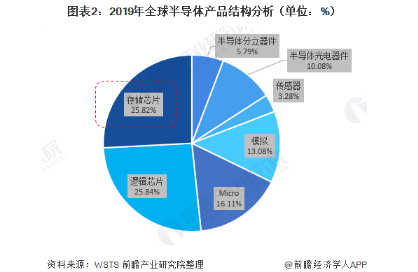 存储芯片是半导体产业的重要分支,约占全球半导体市场的四分之一至三分之一。根据世界半导体贸易统计(WSTS)数据显示,2019年,全球半导体工业最大的领域是逻辑、存储芯片,其中存储芯片占半导体行业销售额的25.82%。