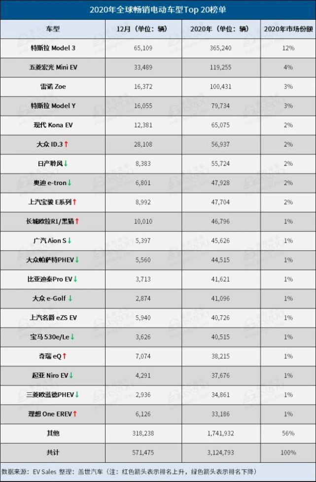 就2020年累计销量来看,特斯拉Model 3连续三年蝉联全球电动车销冠,累计售出36.52万辆,目前还未看到能真正与其竞争的对手,因此2021年畅销王座可能依然坐得稳。