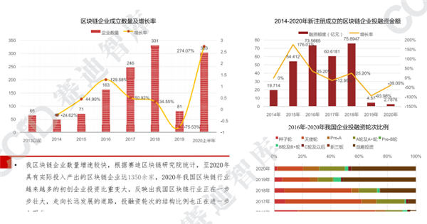 2020年,我国区块链企业数量增速较快,赛迪区块链研究院统计,具有实际投入产出的区块链企业达1350余家,企业细分服务覆盖了底层技术研发、行业应用、产业推广、区块链媒体、区块链安全服务、解决方案、DApp应用等领域,产业链条日益完善。赛迪区块链研究院发布的《2020区块链技术创新典型企业名录》显示,各企业的团队实力、科研实力、创新实力、产品竞争力以及运营能力均表现稳定。2020年我国区块链企业资金运作整体良好,企业深挖底层技术研发,积极布局区块链产业应用,在各地区政府、区块链团体的高度重视和积极扶持下,区块链技术和产业应用得到长足发展。投融资方面,我国区块链企业融资趋于合理。2020年上半年,新注册成立的区块链企业中有8家获得投融资,受疫情影响,投融资项目增速有所降低,但总体趋势仍处增长通道,行业覆盖规模也逐步扩大。