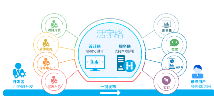 结合自身的技术优势和对行业的理解,葡萄城将低代码开发平台的应用场景聚焦于企业级应用开发。企业级应用开发意味着更高的技术标准,对开发工具也提出了更严峻的挑战。在平台开发的过程中,葡萄城的开发团队跨过了开发组件和部署方案两大难关,经过4年的探索和实践,于2016年正式发布了活字格企业级低代码开发平台。