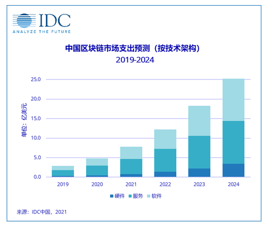回顾区块链政策,从2019年政府将区块链定义为核心技术自主创新重要突破口,到2020年发改委将区块链纳入新基建范畴,再到“十四五”规划中把区块链划为数字经济重点产业,一系列政策都为区块链市场发展提供了积极的引导信号,是区块链技术从项目试点走向商业推广阶段的强心剂。