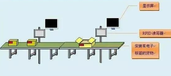 将RFID标签贴在生产的物料或者是装物料的托盘上,将产品的规格、数量、时间、负责人等相关的信息记录在上面,代替传统的手工记录;生产管理人员通过读写器随时读取产品信息;其他相关人员能及时掌握生产状况并根据情况调整生产安排,以及随时掌控物料的流向。