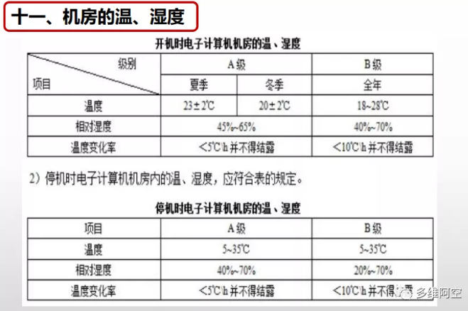 机房温湿度标准如下图: