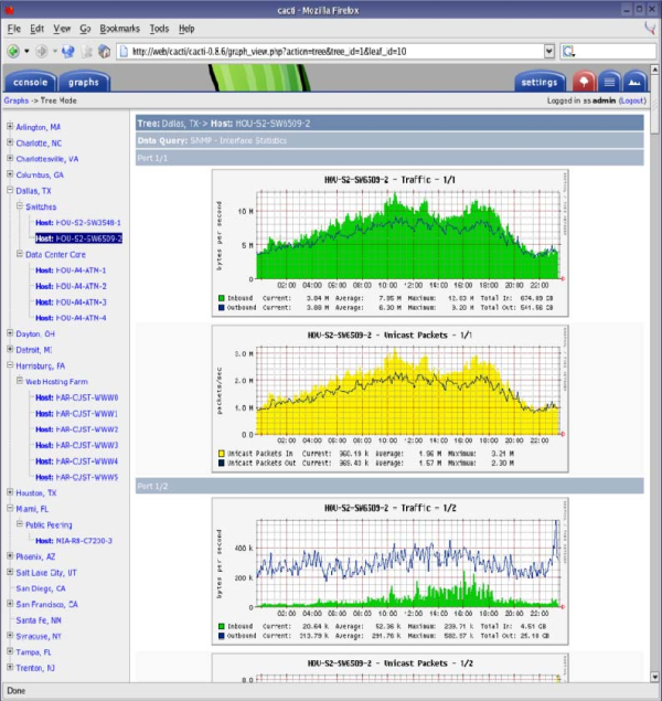 它通过snmpget来获取数据,使用RRDtool绘图,但使用者无须了解RRDtool复杂的参数。它提供了非常强大的数据和用户管理功能,可以指定每一个用户能查看树状结构、主机设备以及任何一张图,还可以与LDAP结合进行用户认证,同时也能自定义模板,在历史数据的展示监控方面,其功能相当不错。