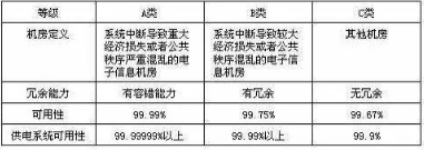 我国在2008年制定的《电子信息机房设计规范》GB 50174-2008,从机房可用性角度将电子信息机房定义为A、B、C三类,其中A类要求最高如下表所示。数据中心一般按A类或B类标准执行。