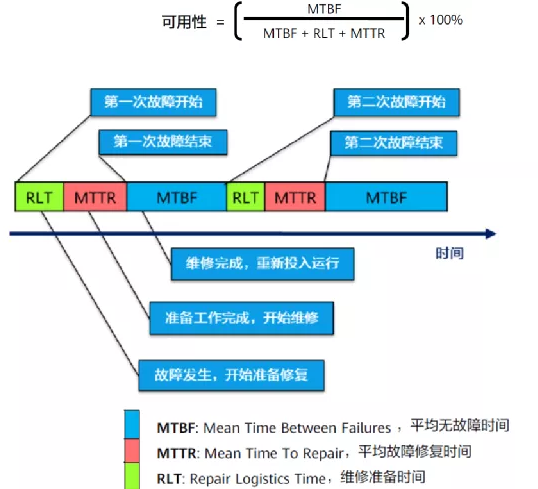 可用性:指在规定的条件和规定的时刻或时间区间内处于可执行规定功能状态的能力,它是系统可靠性、可维修性及可维护性的综合体现,又称可用度,通常A字母表示。