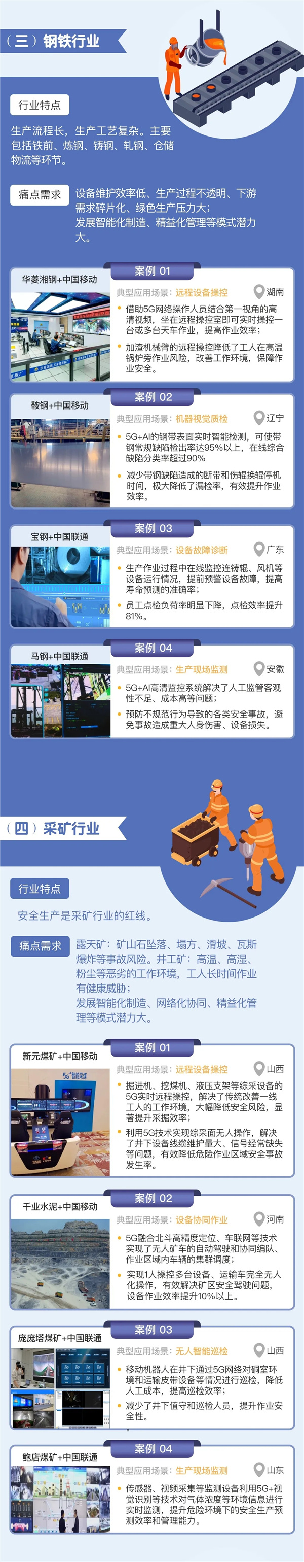 为系统总结发展成效,向更多行业和企业应用“5G+工业互联网”提供具有借鉴意义的模式和经验,我局会同各省(自治区、直辖市)工业和信息化主管部门、通信管理局,经地方推荐、企业报送、专家评审等环节,总结形成《“5G+工业互联网”十个典型应用场景和五个重点行业实践》,具体介绍10个典型场景及5个重点行业“5G+工业互联网”的实际应用情况。