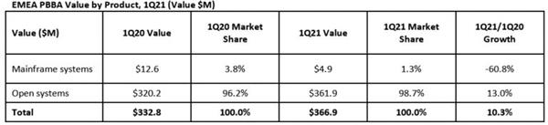 根据国际数据公司PBBA的数据,EMEA专用备份设备(PBBA)市场对Covid-19大流行的影响具有弹性,传统备份设备的支出在21年第一季度达到3.669亿美元,比20年第一季度增长10.3%跟踪器。