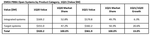 2021年第一季度主要投资于目标系统,其市值增长了26.7%,其次是集成系统(同比增长5.3%)。然而,大型机(VTL)的增长同比下降60.6%。