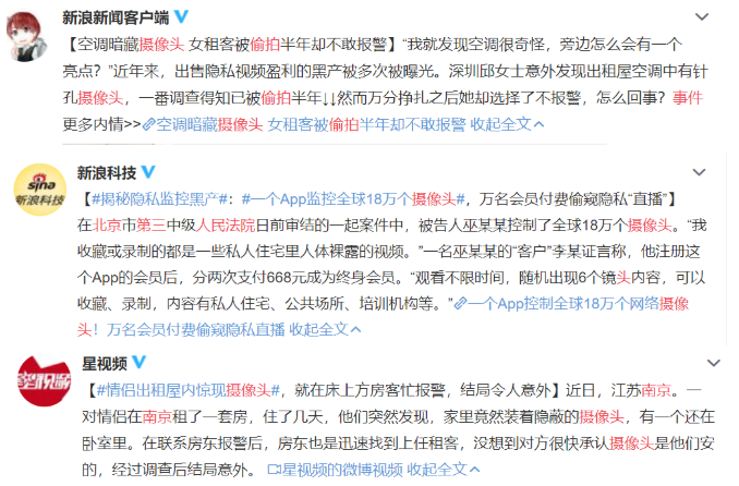 有些违法商家未经用户允许,远程操纵摄像头“直播”,公然监视他人生活。如某App中含有大量未解锁的隐私摄像头监控截图,通过付费绑定后,客户就可以在手机端观看。这些摄像头大部分对准的是卧室或客厅,给个人隐私带来巨大威胁。