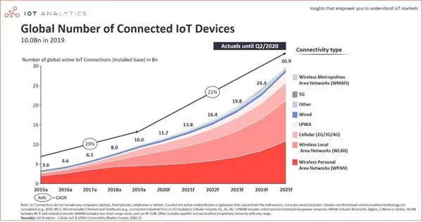 不同连接方式物联网设备分布情况(来源:IoT Analytics)