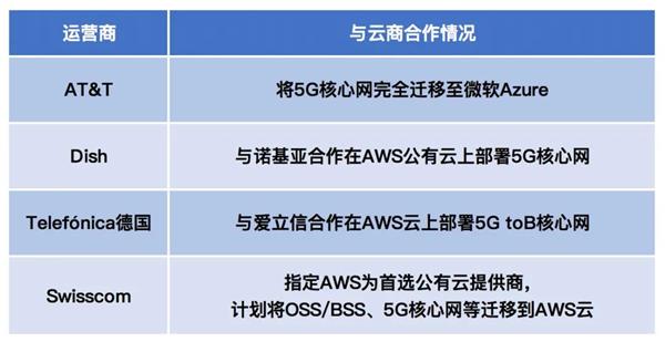 我们大概统计了一下,自2021年6月以来,全球已有AT&T、Dish、Telefónica德国、Swisscom这五家运营商宣布将5G核心网迁移到Azure或AWS云上。