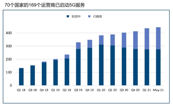 截止到今年5月,全球投资5G产业的国家/地区和运营商,分别是133个、443家。全球70%以上的5G基站都是由中国建设的。
