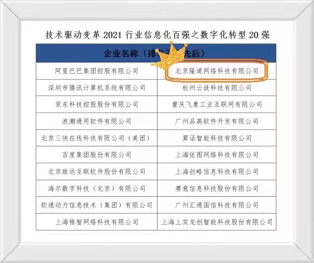 “2021行业信息化竞争力百强”榜单正式揭晓!北京隆道网络科技有限公司凭借多年来在数字化采购与供应链管理领域的突出表现及产品和服务的创新能力成功上榜!