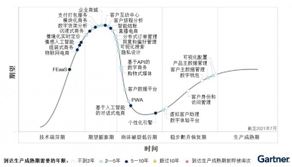 图一、2021年数字商务技术成熟度曲线来源:Gartner(2021年10月)