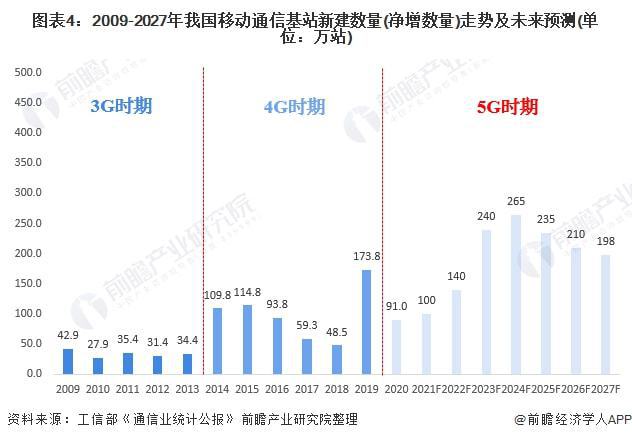 近日,工业和信息化部新闻发言人、运行监测协调局局长罗俊杰在国新办新闻发布会上表示,目前我国5G基站数达115.9万个,占全球70%以上,5G终端连接数达4.5亿户,相较去年增加了2.47亿户,千兆网络已具备覆盖超过2亿户家庭的能力。据前瞻产业研究院预计,我国5G基站建设节奏将呈现加速后回落但仍维持在较高水平的态势,2024年5G基站新建数量有望达到顶峰,预计将达到265万站。
