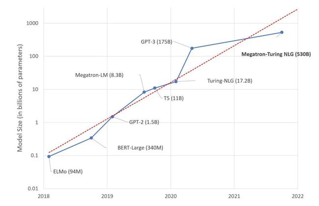 前不久,微软和英伟达推出包含5300亿参数的语言模型MT-NLG,这是一款基于Transformer的模型被誉为“世界上最大、最强的生成语言模型”。