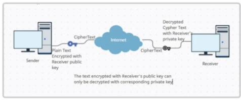 在公钥密码中使用两个密钥:一个称为公钥,另一个称为私钥。这两个密钥是相互关联的,公钥不能与其他私钥一起使用,反之亦然,它们是绑定在一起的。这些密钥用于散列函数以生成数据的散列值,并使用公钥对其进行加密。消息的预期接收者使用相应的私钥对其进行解密,并且只有关联的私钥才能对其进行解密。