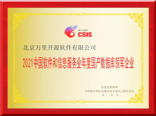 近年来,我国软件和信息服务业运行态势良好,软件行业在国民经济中的地位逐步上升,软件行业规模逐年扩大,信息技术服务占据绝对主导地位,正在成为数字经济发展、智慧社会演进的重要驱动力量。本次万里数据库荣获2021中国软件和信息服务业年度国产数据库领军企业,正是业界对万里数据库公司技术实力的肯定。