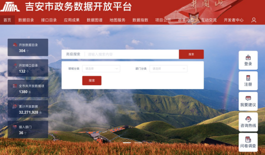 吉安市政务数据开放平台是以国家开放数据分级分类为导向,将政务数据根据分级分类制度进行保护和公共数据开放的服务平台。是吉安市打造的“我为群众办实事”优秀创新案例之一。目前,吉安市政务数据开放平台已有304个开放数据目录和132个数据服务接口,约3227万条结构化数据,共涉及30个市级部门。预计在2021年底完成吉安市下辖13个县区的资源目录梳理工作,形成市县数据对接一体化的统筹局面,做到全市县区开放数据一体纳入平台,统一数据开放服务的窗口。