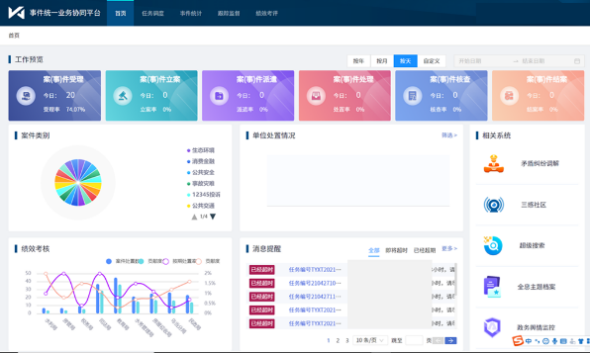 2)矛盾风险的联动处置:实现了事件统一协同治理、治理过程实时跟踪和治理结果及时反馈等。