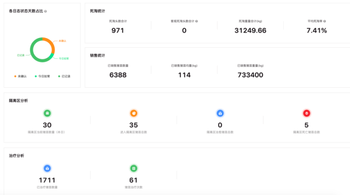 最后,基于全流程的数据统计与综合分析,园区实现了降低死淘率损耗,增加料肉比经济产出的目标,工作效率大大提升,降本增效明显。