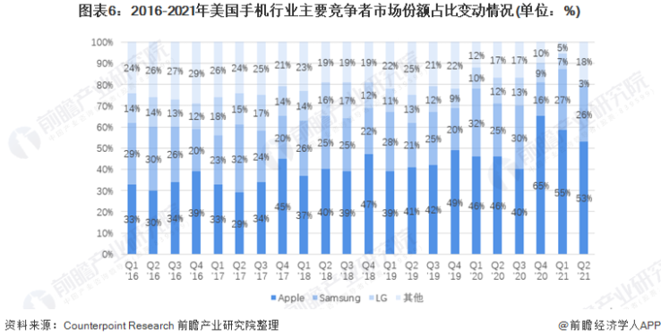 美国手机行业竞争格局分析:苹果竞争优势明显