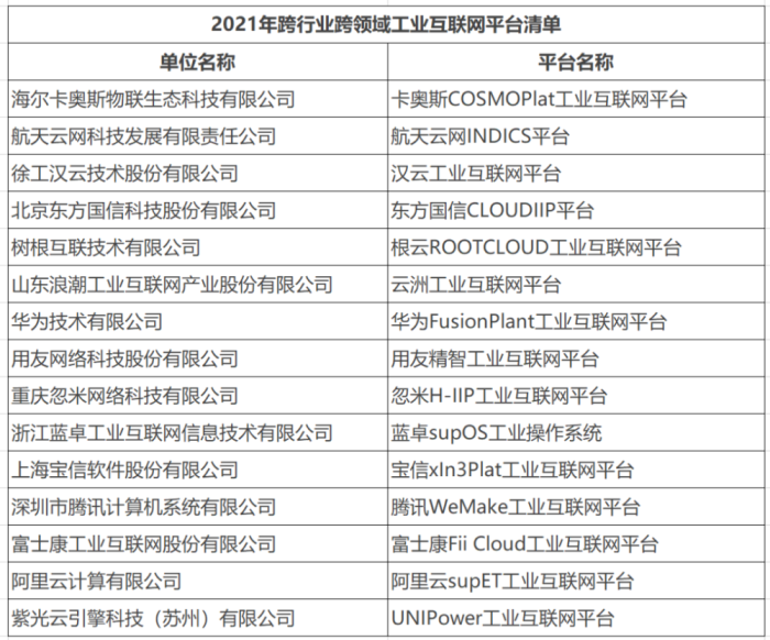 与之相比,2021年跨行业跨领域工业互联网平台清单如下所示: