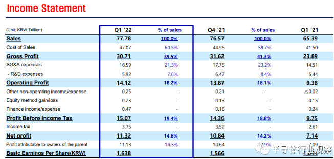 4月28日,三星电子发布了2022财年第一季度财报,营收为77.78万亿韩元(约合人民币4045亿元),设备体验部门(包括消费电子和移动业务)一季度营收48.07万亿韩元;设备解决方案部门营收26.87万亿韩元,其中存储业务营收20.09万亿韩元;显示业务部门营收7.97万亿韩元;哈曼营收2.67万亿韩元。